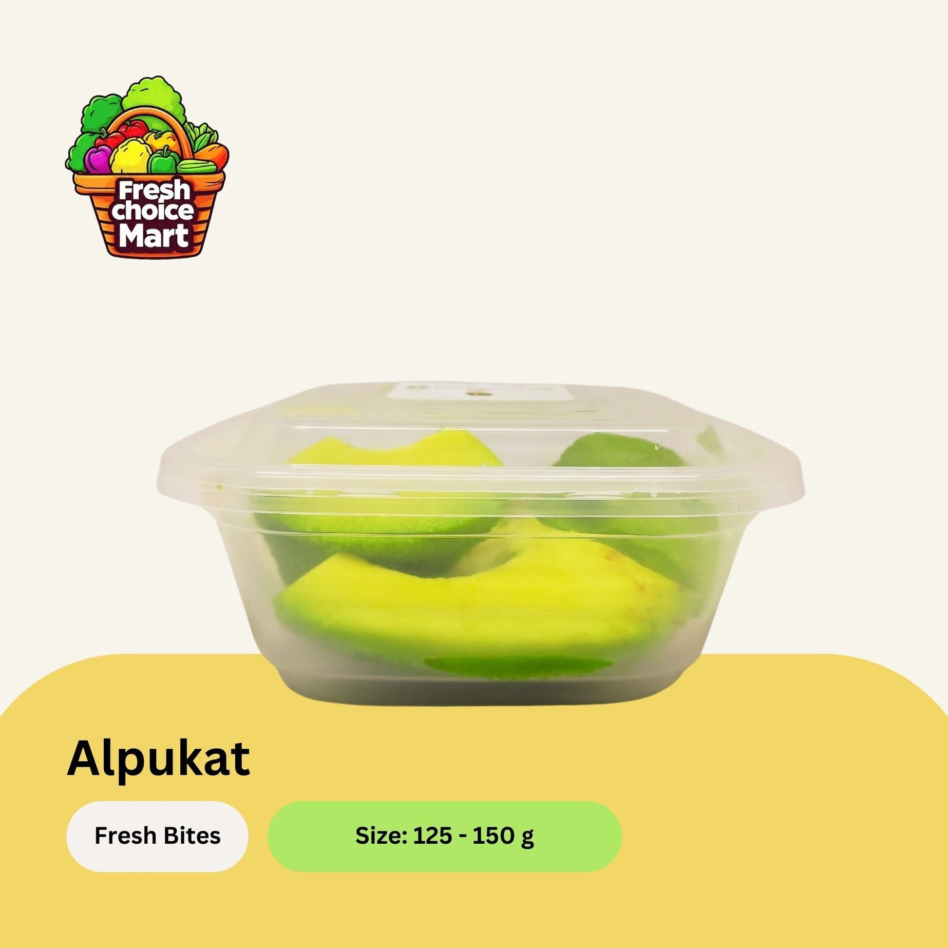 Fresh Bites Alpukat berisi 125 - 150 gram alpukat segar pilihan. Dikemas dalam fruit tray untuk menjamin keamanan dan kebersihannya.